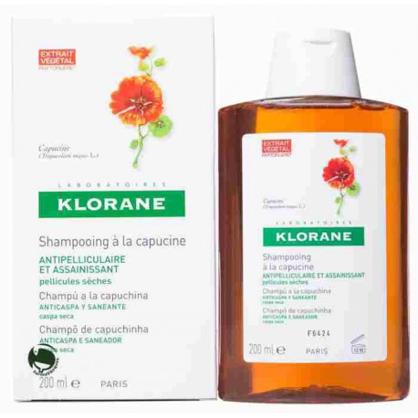 es un champú al extracto de Capuchina que elimina rápidamente la caspa seca , sanea el cuero cabelludo y devuelve al pelo su resplandor .