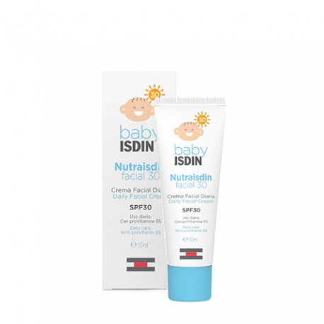 Nutraisdin Facial aporta la hidratación necesaria que necesita la delicada piel de la carita del bebé mientras la protege frente a la agresión de las radiaciones UVA-UVB.